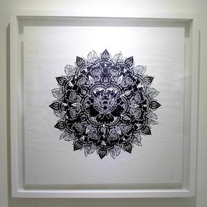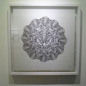 Botánica del mundo flotante, es un estudio de la naturaleza presente en el “ukiyo-e”, especialmente las series de flores de Hokusai. Una expedición a través de doce imágenes, un juego entre hojas, flores, pequeñas ramas que parecen tan libres, llenas de vida y al mismo tiempo tan frágiles, en contraste con la geometría, estática, fría e indiferente a su entorno, y aun así, en pequeños momentos parecieran una sola cosa, unidas en lo más profundo, donde una no puede existir sin la otra, como un reflejo. Una búsqueda por las estructuras invisibles que nos mantiene de pie, por esos delgados hilos que conectan al mundo con todo lo que habita en él.
