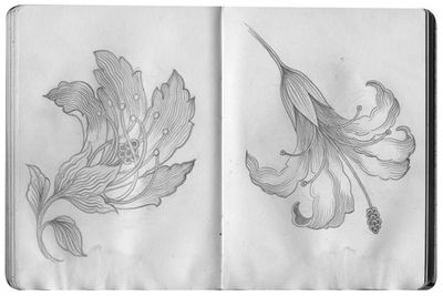 Este cuaderno es una pequeña expedición botánica inspirada en en modelos vivos, grabados antiguos, ornamentos arquitectónicos, tatuajes, cerámicas, fotos y sueños.